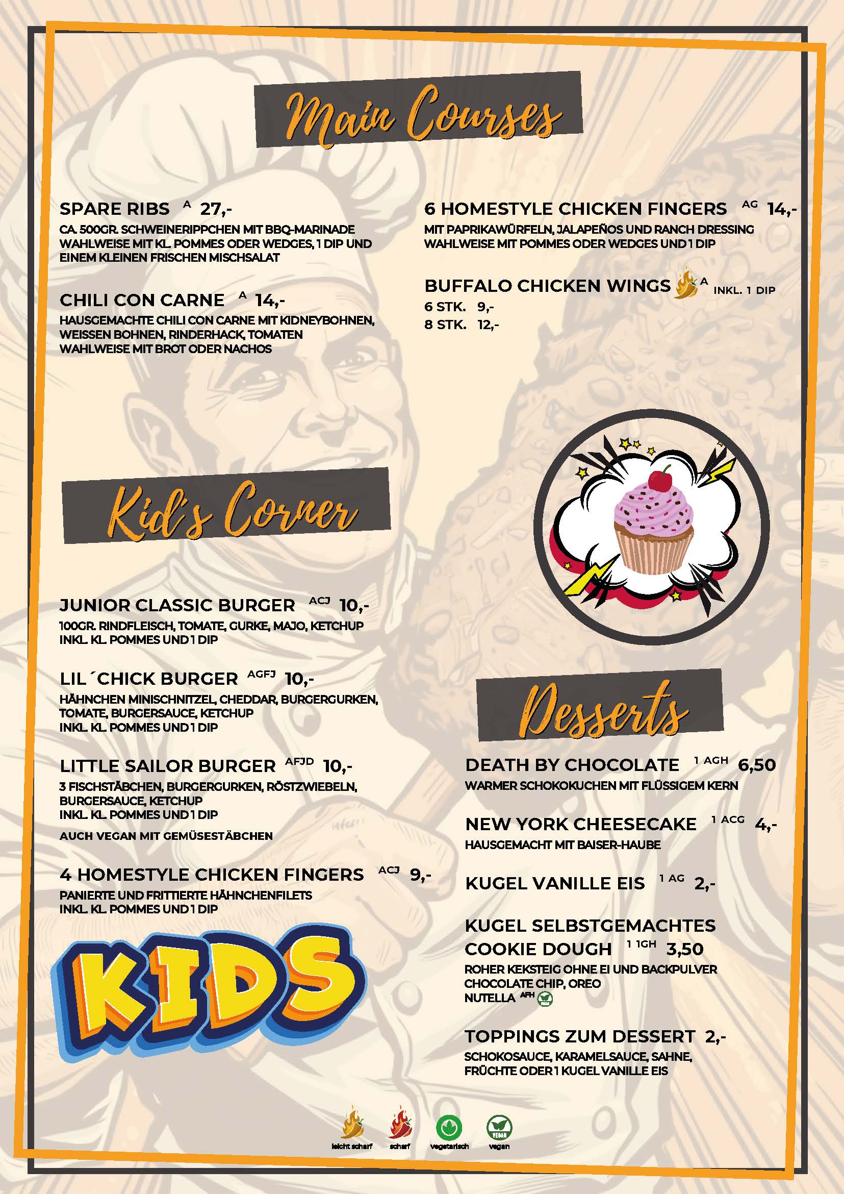 Main Courses, Kids Corner, Desserts